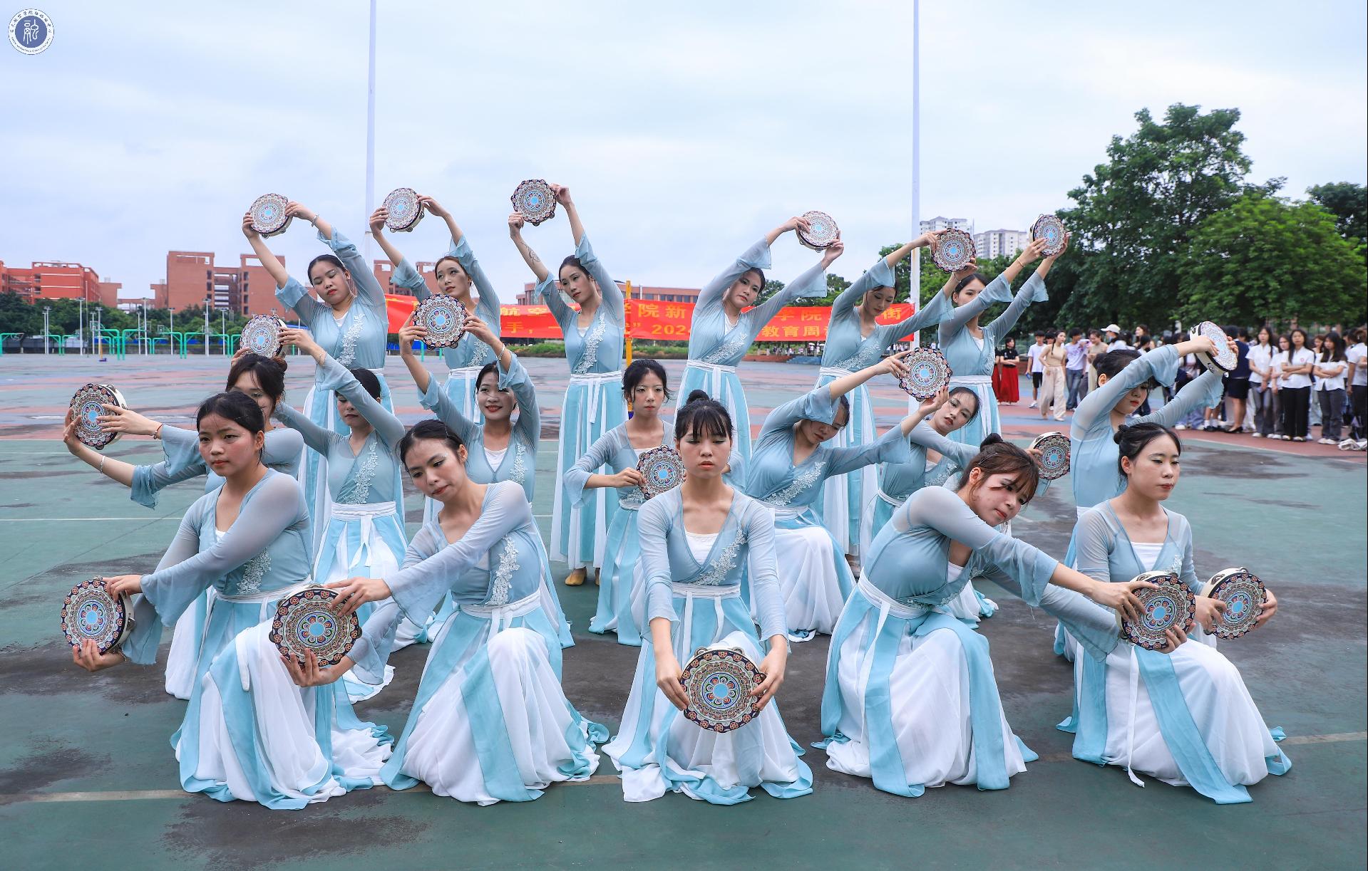 在广西蓝天航空职业学院新雅学商学院2024 年职业教育活动周期间,新雅学商学院于5月22日在我校篮球场举办了新雅学商学院文化街活动教学成果展示。