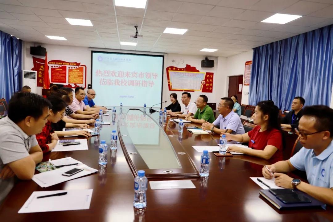 9月25日下午,来宾市副市长李光劭率市投资促进局、市人力资源服务中心等单位领导莅临我校调研指导工作。我校党委书记莫勤德、执行副校长张利、副校长覃高谋、陆小丹等接待了李光邵一行。