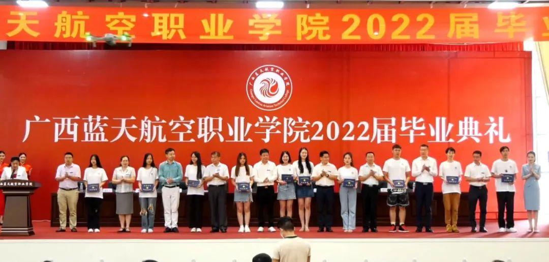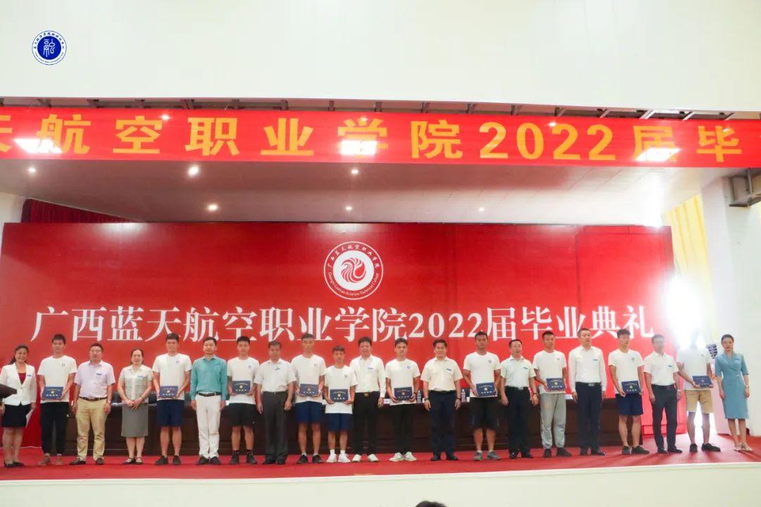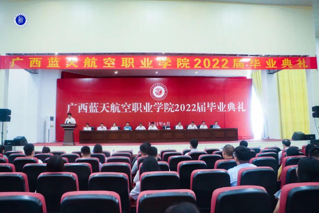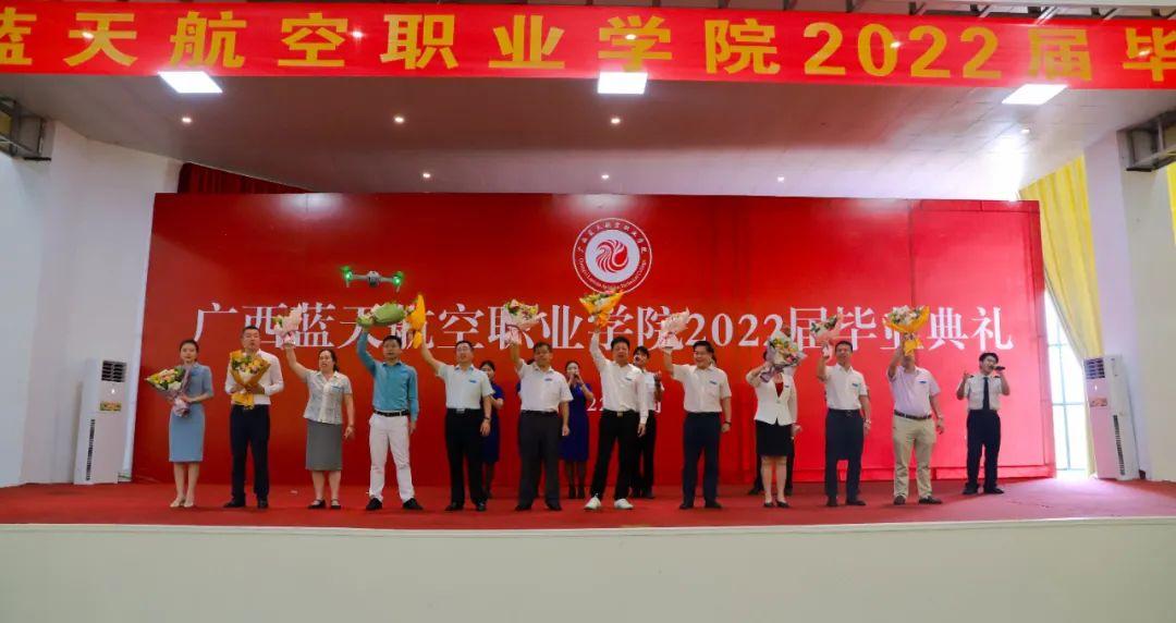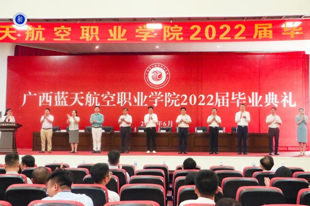广西蓝天航空职业学院创始人洪今旭、校长陈俊伟、党委书记李昌、执行副校长张利,广西旭日航空实业股份有限公司人力资源总监刘丰,广西蓝天航空职业学院副校长孟凡、覃萍、曾令松,校长助理覃玲媛、刘小飞出席典礼,各职能部门的领导、教职工代表、毕业生代表、以及大一大二的学生代表参加了典礼。副校长陆小丹主持典礼。