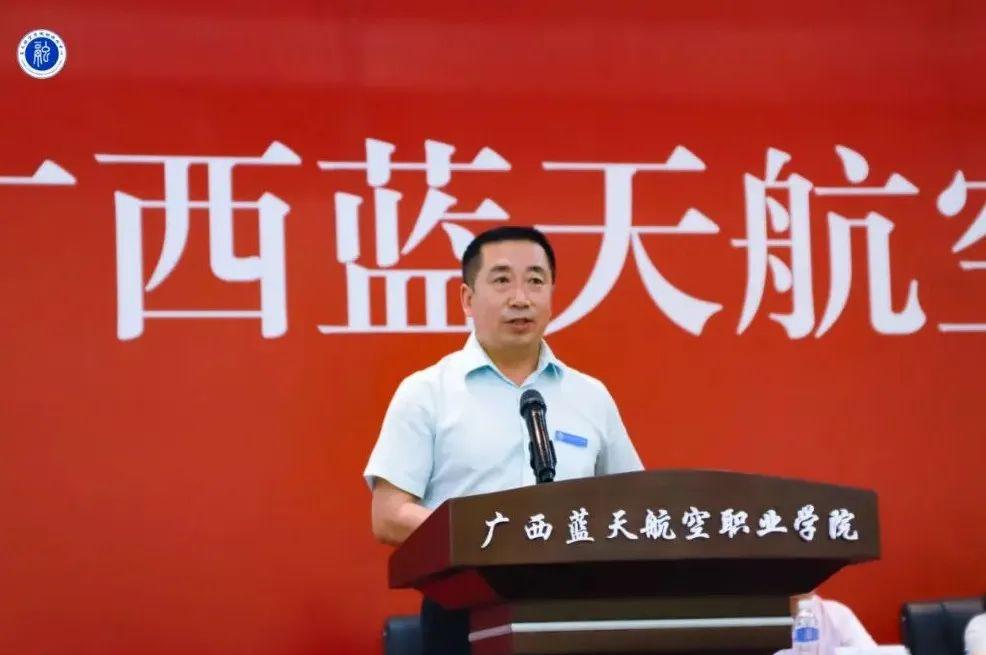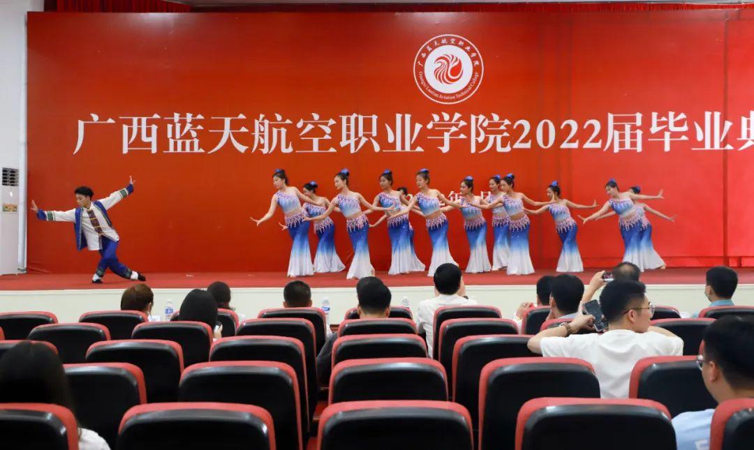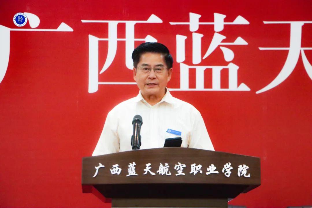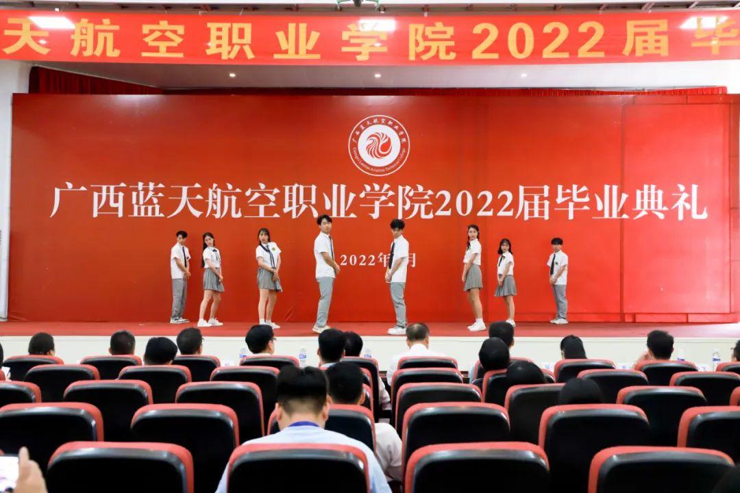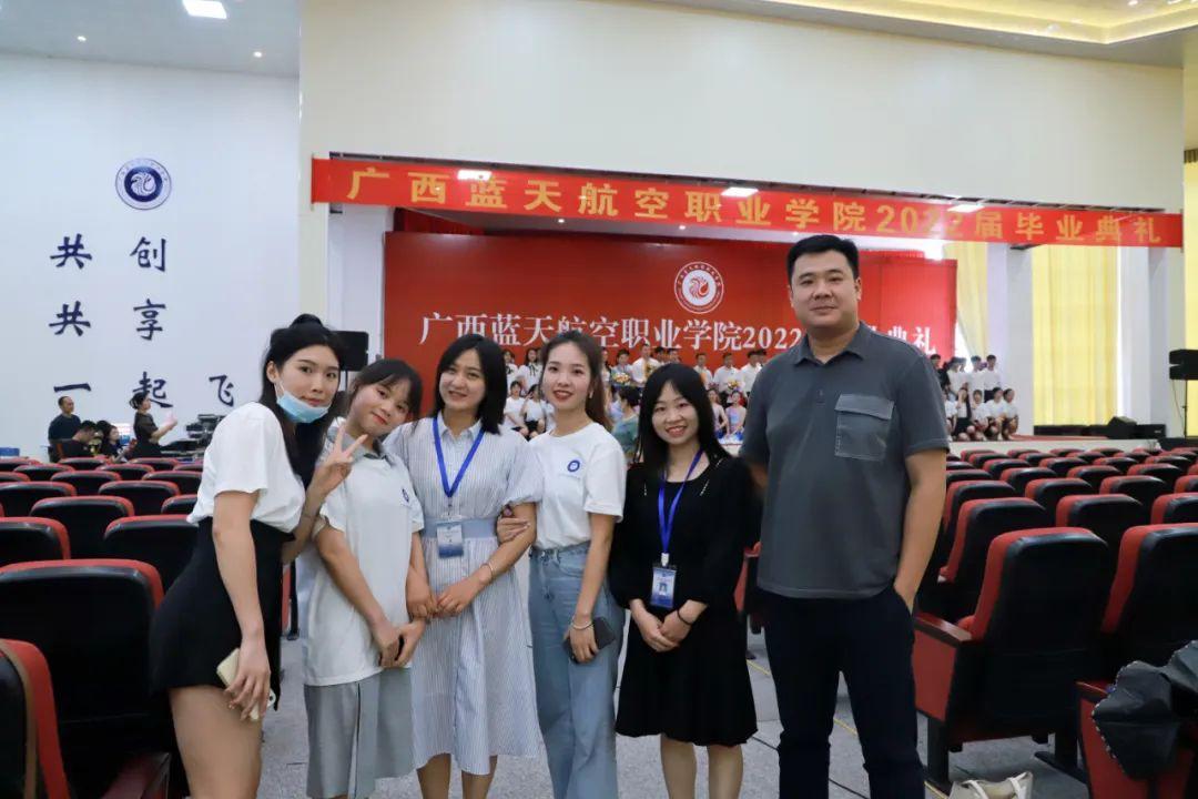 广西蓝天航空职业学院创始人洪今旭、校长陈俊伟、党委书记李昌、执行副校长张利,广西旭日航空实业股份有限公司人力资源总监刘丰,广西蓝天航空职业学院副校长孟凡、覃萍、曾令松,校长助理覃玲媛、刘小飞出席典礼,各职能部门的领导、教职工代表、毕业生代表、以及大一大二的学生代表参加了典礼。副校长陆小丹主持典礼。