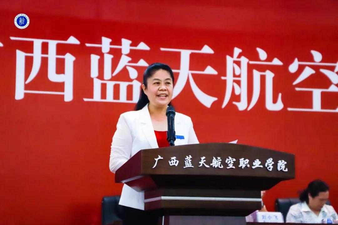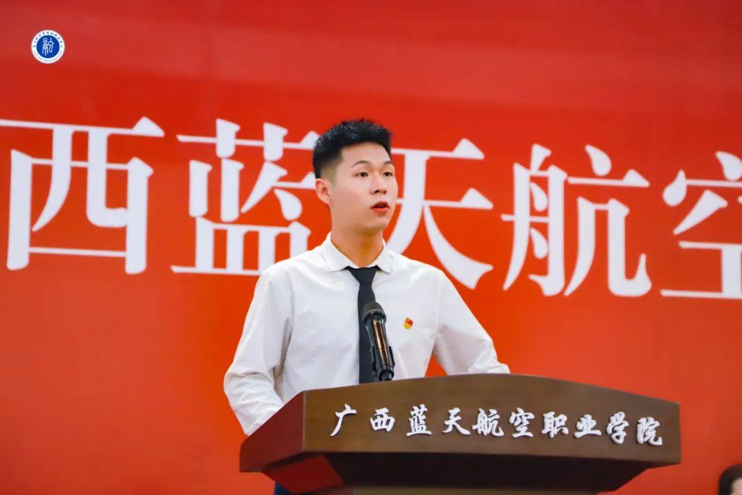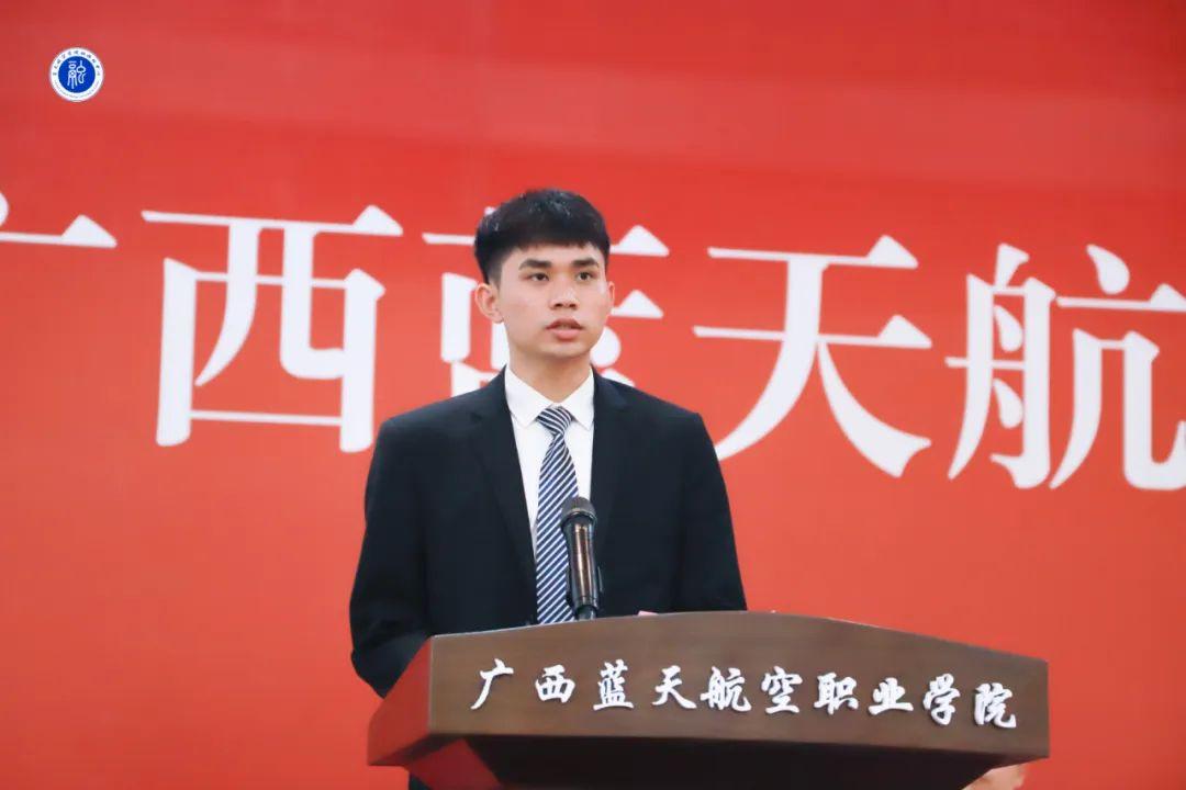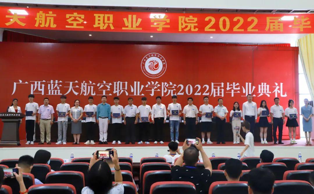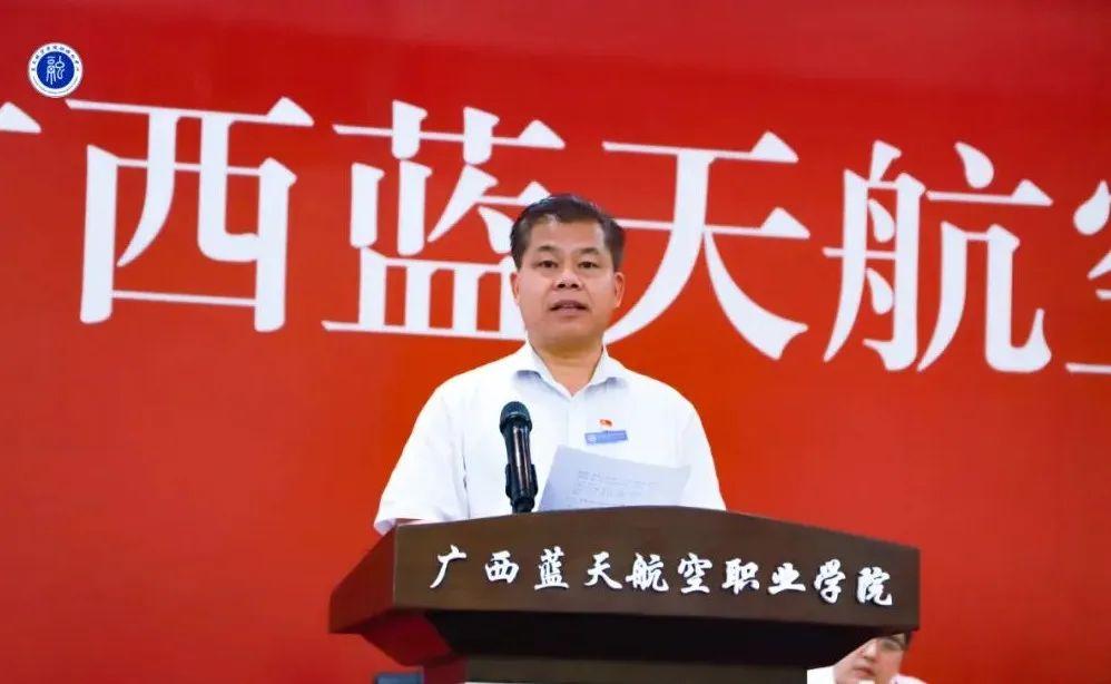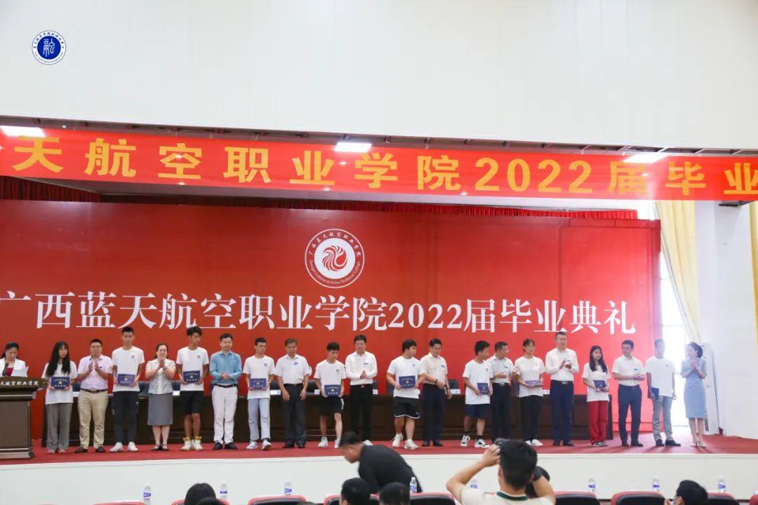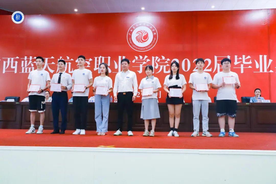 学校党委书记李昌宣读《自治区教育厅关于认定2022届广西壮族自治区普通高等教育优秀毕业生的通知》《广西蓝天航空职业学院关于表彰2022届优秀毕业生的决定》。