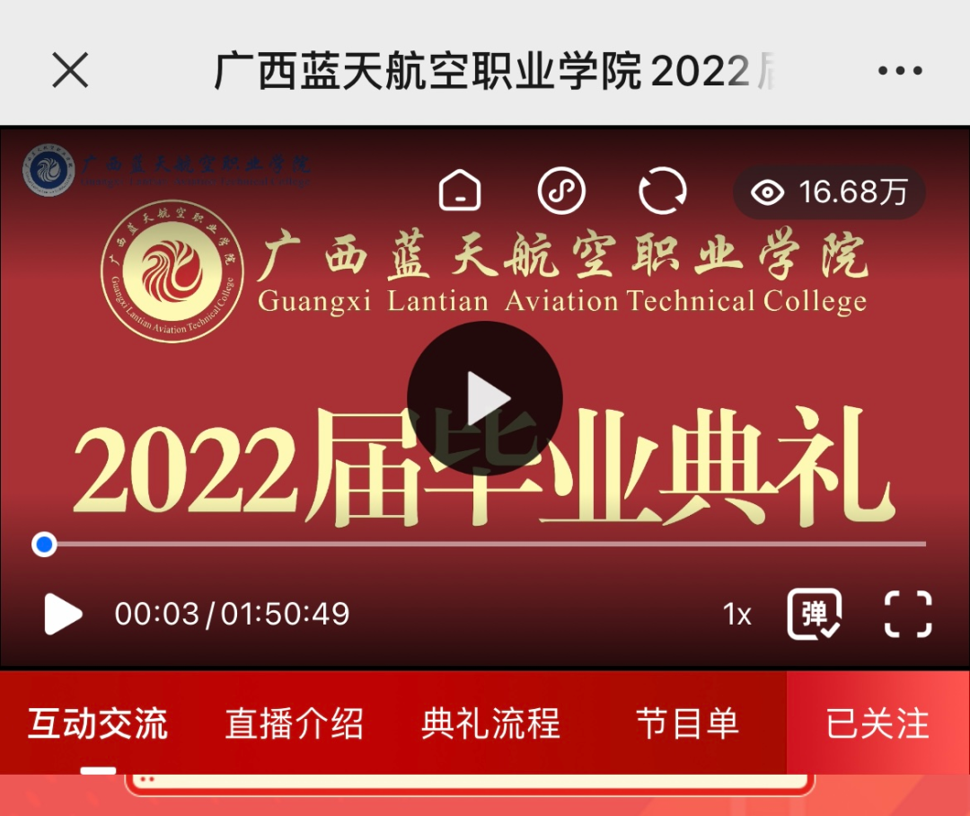 本次毕业典礼采用了网络在线同步直播方式,观看人数超过16万人次,为无法现场参加典礼的毕业生及其亲友、广大师生校友以及关心学校发展的各界朋友提供观看渠道,分享精彩时刻。