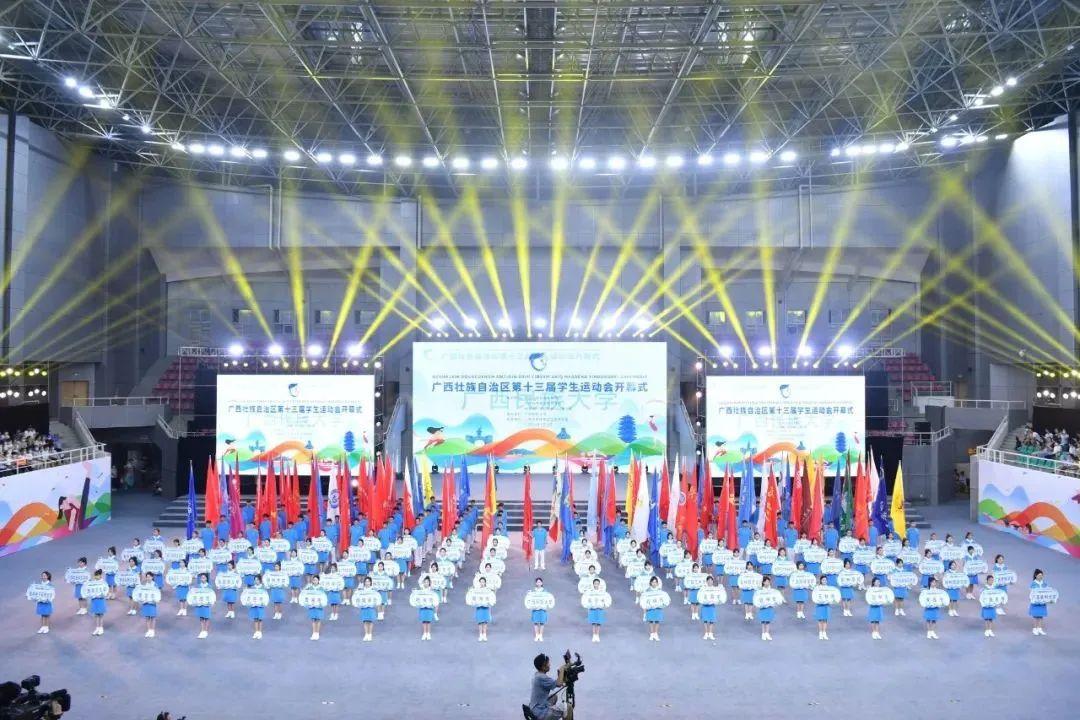 7月10日至14日,广西壮族自治区第十三届学生运动会在广西民族大学思源湖校区举办。 本届运动会全区共有14个设区市、62所高校及24所区直中等职业学校体育代表团报名参加,参赛学校数量及参赛师生人数均创历史新高。运动会共设田径、游泳、篮球、排球、足球、乒乓球、羽毛球、武术、健美操、啦啦操、毽球、抛绣球、板鞋竞速等13个大项,共286个小项。