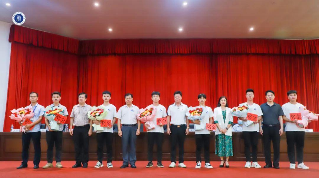 何炎斌同学代表获奖学生发言。何炎斌同学分享了备赛、参赛、获奖历程,感谢学校为他们搭建了展示自我的舞台,感谢老师的悉心指导,以及队友、同学的支持和鼓励。