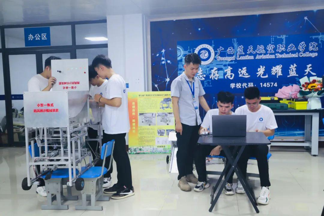 指导老师和参赛学生从接到大赛一号通知就开始认真研究大赛主题,积极调研,精心培育参赛作品。学校高度重视此项大赛,在经费保障、后勤服务等环节给予全方位支持。我校工程创新基地于2021年10月开始组队备赛,航空工程学院老师陈智根据大赛要求,对学生进行专业知识培训,为学生制定了明确的设计进度安排。秉持精益求精的工匠精神,对学生的作品设计方案进行二十余次打磨修改,逐步完善作品功能。同时,多次为学生搭建模拟比赛现场,邀请多名教师对参赛作品点评,让参赛学生提前适应比赛环境,提高语言组织能力和应变能力,高效地提升参赛学生的综合能力。