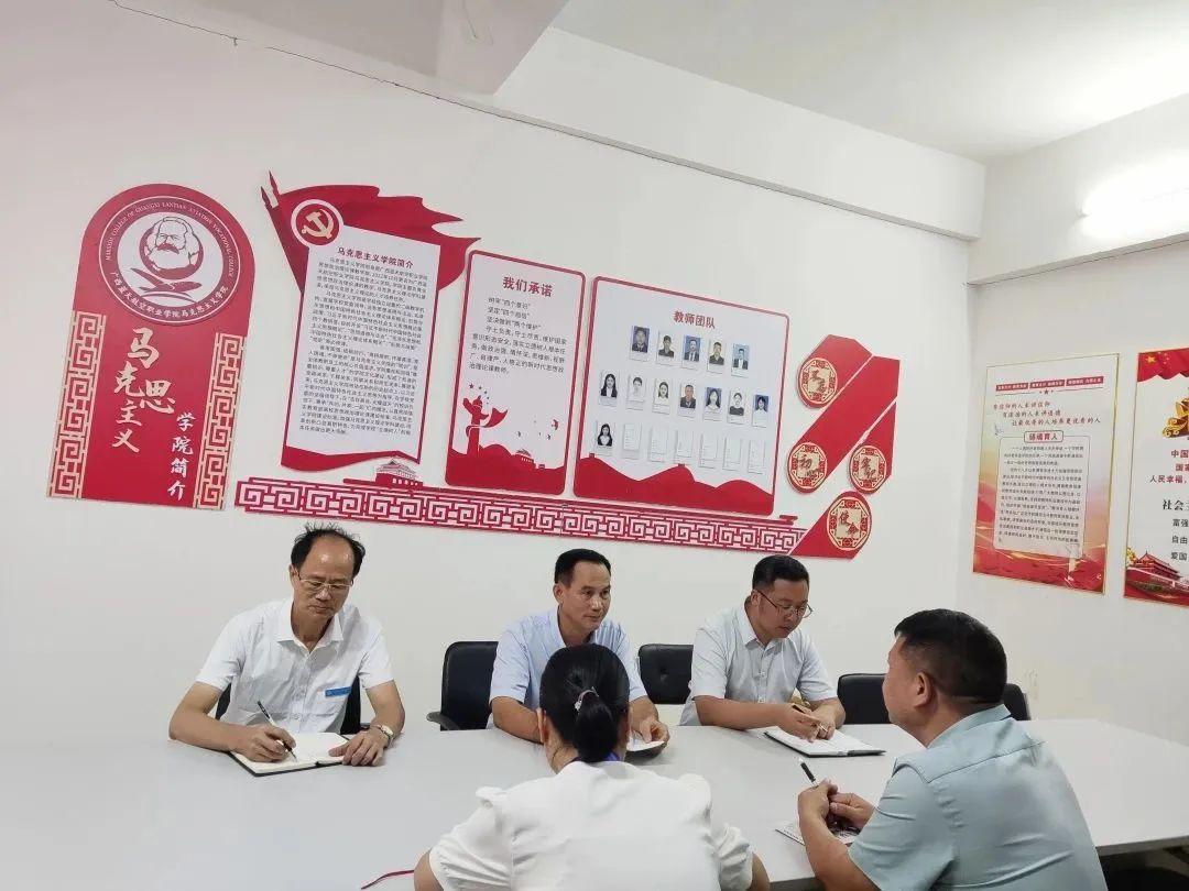 9月20日下午,学校党委书记谢文斌、执行副校长鲁明以及教务科研处处长刘三发一行,到马克思主义学院会议室召开推进马克思主义学院建设发展现场办公会。马克思主义学院院长谢汝宣、党支部书记卓秋丽参加了现场办公会。