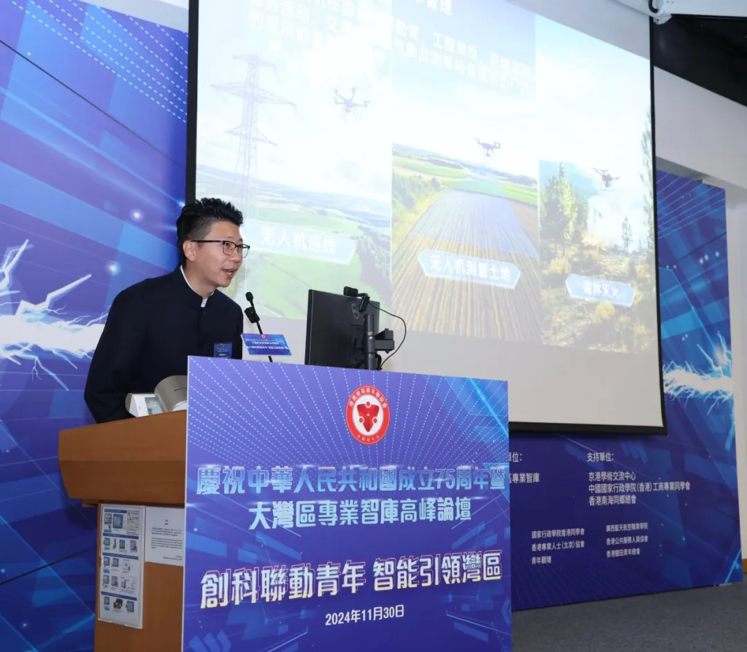 为庆祝中华人民共和国成立75周年,由港澳南海青年联谊会主办的“大湾区专业智库高峰论坛”于11月30日在香港中文大学利黄瑶璧楼LT3隆重举行。活动很荣幸得到中央人民政府驻港联络办九龙工作部副处长练泽锷先生、佛山市南海区委统战部副部长骆智勇先生大力支持,并莅临担任主礼嘉宾。同时,活动亦邀请多位政商界名人、社会贤达拨冗到贺,高朋满座,热闹非凡。我校校长助理洪剑伟应邀出席,作题为《掌握低空专业技能 共享时代发展机遇》的主题演讲。