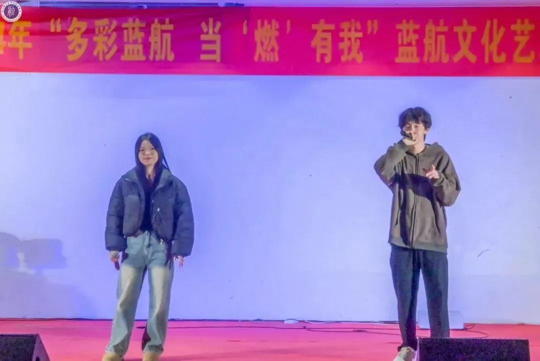 秦凯乐同学(右一)主持2024年“多彩蓝航 当'燃‘有我”蓝航文化艺术嘉年华之第二届音乐会